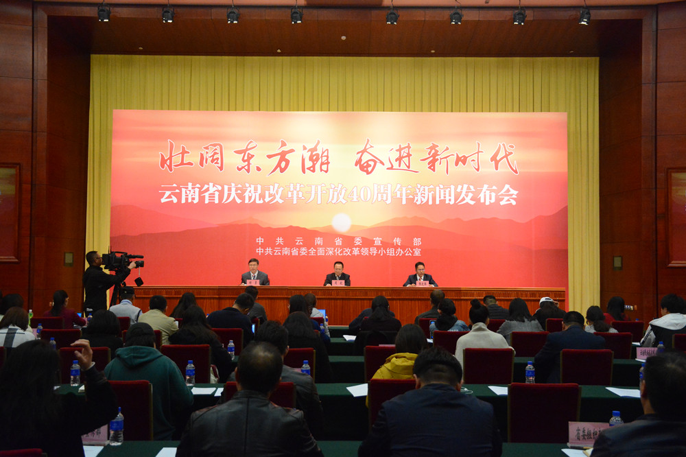 云南省人民政府新闻办公室于11月28日下午,在昆明海埂会堂玉兰厅举行“壮阔东方潮 奋进新时代”云南省庆祝改革开放40周年系列新闻发布会•党的建设主题专场,发布相关新闻,并回答记者提问。