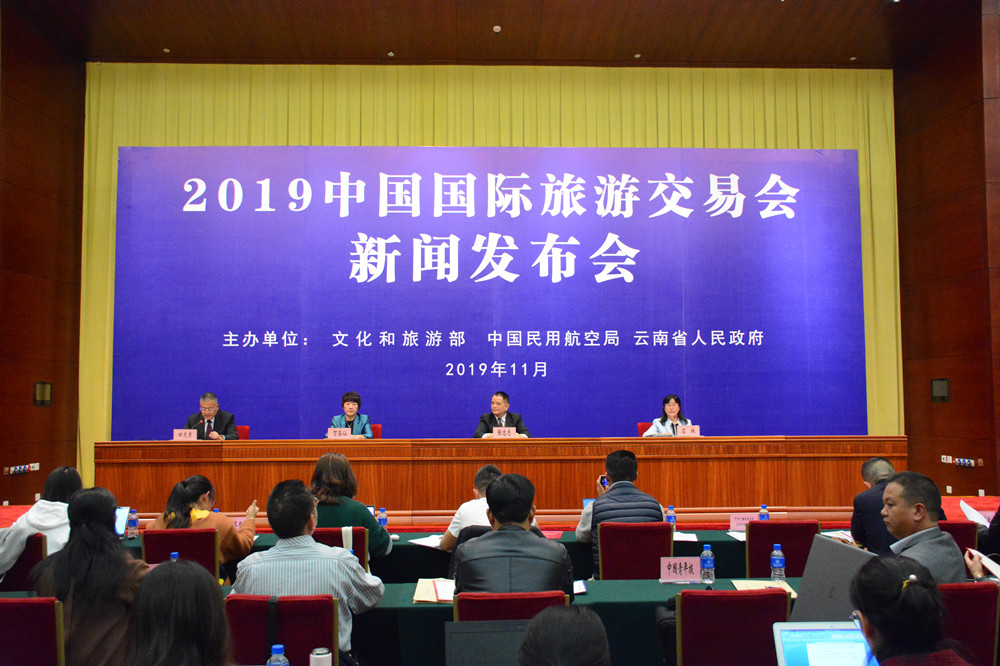 云南省人民政府新闻办公室于11月14日下午,在海埂会堂玉兰厅举行2019中国国际旅游交易会新闻发布会,发布相关情况并回答记者提问。