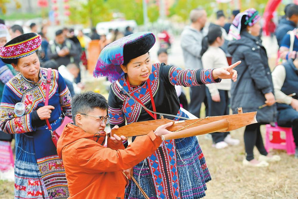 马年新春,非遗射弩体验活动在麻栗坡县花山节上火热开展,八方游客齐聚边关感受千年技艺的魅力。