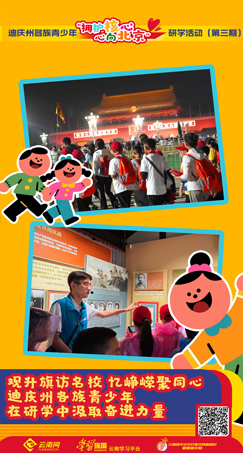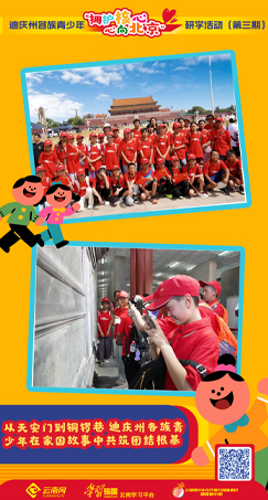 为深入贯彻落实各族青少年交流计划,迪庆州民族宗教委、迪庆州教育体育局联合打造了迪庆州各族青少年“拥护核心 心向北京”研学活动品牌。2022年以来,研学活动始终以铸牢中华民族共同体意识主线,以双向交流、立德树人、实践育人为抓手,通过系列体验式教育和研究性学习,进一步增进各族青少年对伟大祖国、中华民族、中华文化、中国共产党、中国特色社会主义的高度认同,不断促进各族青少年学生广泛交往、全面交流、深度交融,使铸牢中华民族共同体意识思想深植各族青少年学生心间。