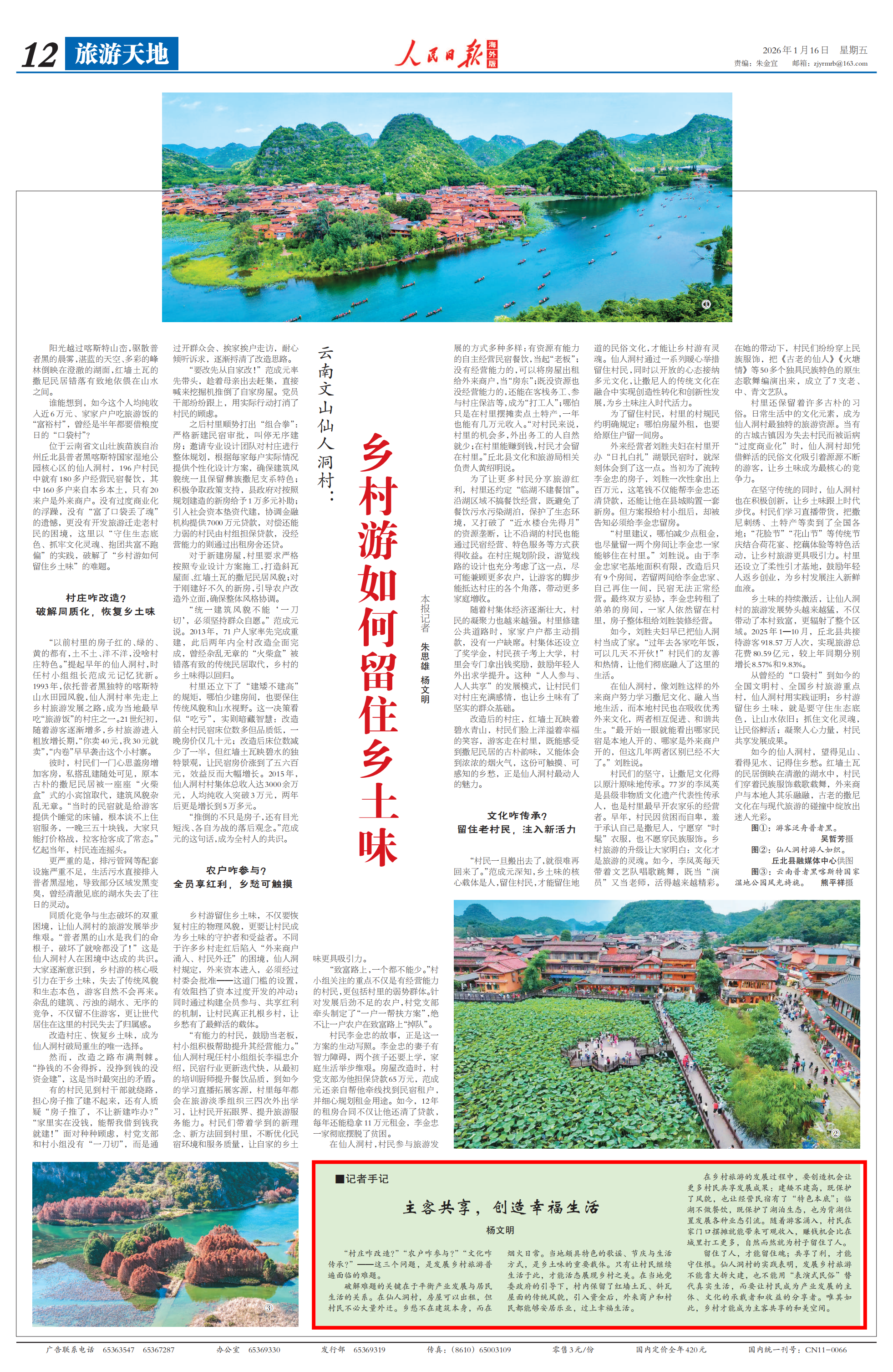人民日报海外版点赞仙人洞村主客共享创造幸福生活