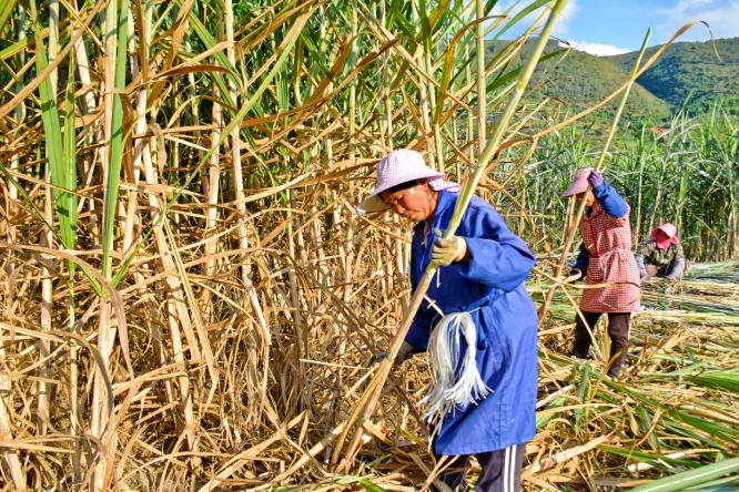 新年以来,弥勒市江边乡宁就村的万亩蔗林绿浪翻滚,空气中弥漫着甘蔗特有的清甜香气。