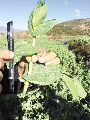 隆冬时节,在东川区铜都街道磨盘村大脑子村小组的地里,绿油油的豌豆尖正沐浴着阳光。这里种植的豌豆植株高大粗壮,口感鲜嫩脆爽,销到北京、上海等国内城市,还出口到新加坡等国家,农户找到了脱贫增收的好途径。