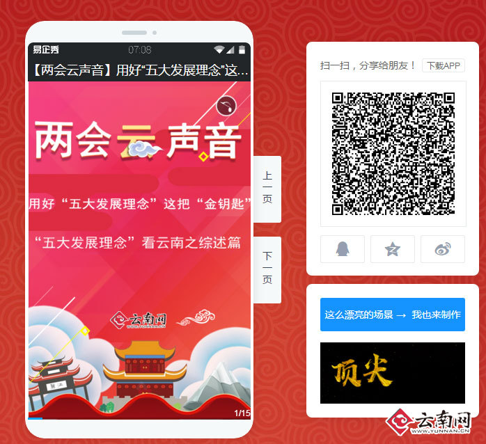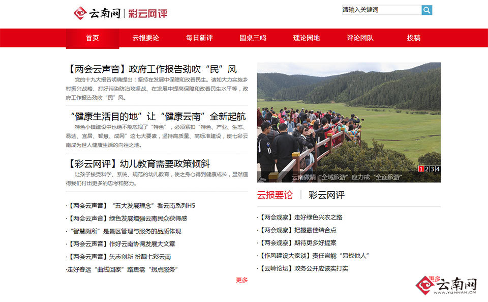 两会期间,云南网网评品牌栏目——《彩云网评》开设“两会云声音”专栏,紧紧围绕云南各项事业取得的新成绩、发生的新变化,进行议题设置,刊发评论文章,传递云南两会好声音,提升了网民对省两会话题的参与度。目前,云南网彩云网评共计发布两会评论稿件28篇,累计被各大媒体和网站转载150余条。此外,彩云网评创新传播方式,首次尝试H5网评模式,推出《两会云声音:“五大发展理念”看云南》和《两会云声音:矢志创新,扮靓七彩云南》两篇H5评论稿,引发微信朋友圈热传。