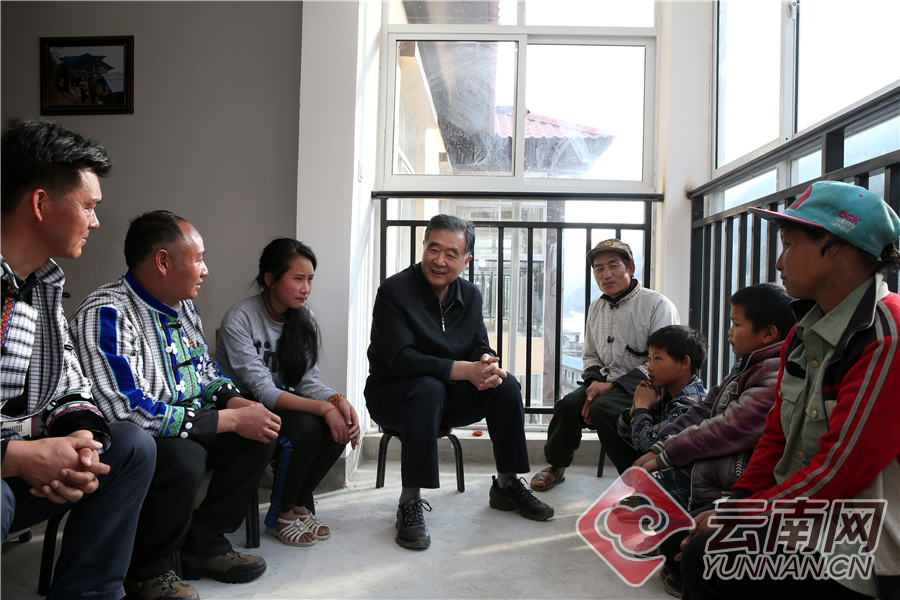 1月26日,汪洋来到福贡县鹿马登乡赤洒底村,考察赤洒底村易地扶贫搬迁集中安置点安置情况。在村民余友邓家,汪洋与他们亲切交流,深入了解搬迁入住后的生活情况。 记者 雷桐苏 摄