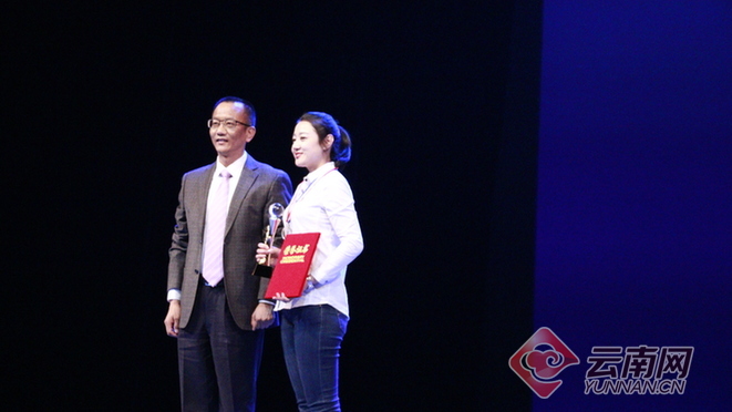 普洱市委书记卫星为世界虹吸壶大赛中国区总决赛冠军唐晓宇颁奖