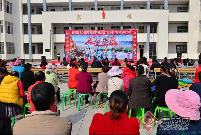 2月4日,元谋县2018年文化科技卫生“三下乡”活动启动仪式在物茂乡举行,54个县级部门现场设立展台,准备了宣传材料,为广大群众宣传科普、卫计知识和惠农政策。