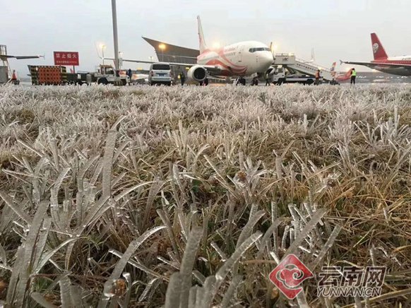 天气方面,预计北京时间2018年2月5日21:00-6日11:00昆明机场将维持0℃以下低温,最低气温-4℃,短时有弱的冻毛毛雨(无明显降水);预计6日00:00-11:00时期间有3-5个量低云,云底高90-150米,受低云影响,主导能见度在1000-3000米之间波动;6日11时之后转为稳定的西南风,温度回升至0℃以上,明日最高温度可达8℃左右。