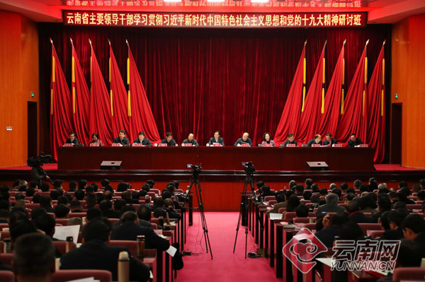 昨日,云南省主要领导干部学习贯彻习近平新时代中国特色社会主义思想和党的十九大精神研讨班在省委党校开班。省委书记陈豪在开班式上强调,全省各级领导干部要深入学习贯彻习近平新时代中国特色社会主义思想和党的十九大精神,增强“四个意识”,坚定“四个自信”,在深学笃信真用上带好头、作表率,满怀激情干事创业,众志成城跨越发展,坚定不移推进新时代中国特色社会主义的云南新实践。