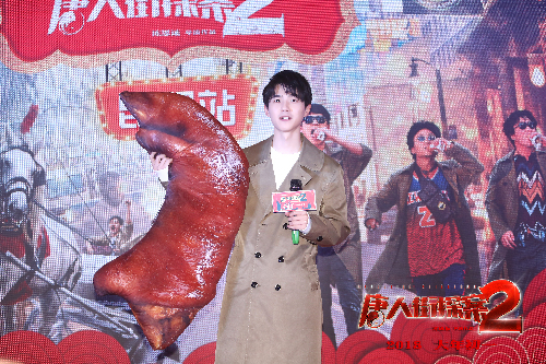 云南网讯(记者 张蕊 耿颖)2月11日,刘昊然携2018年春节档唯一超强口碑喜剧大片《唐人街探案2》报喜昆明,他抱着一只“猪蹄儿”直奔昆明万达广场为大家的“杀猪菜”加了一道菜。并畅聊戏里戏外的成长及陈思诚导演如何化身32个角色指导拍戏。据悉,由陈思诚编剧、执导,王宝强、刘昊然、肖央、刘承羽、尚语贤、王迅、妻夫木聪、Michael Pitt、元华等主演的喜剧探案电影《唐人街探案2》将于2018年大年初一(2月16日)在全国各大院线上映!目前,“唐探报喜,一笑到底”的主题路演正在全国24个城市陆续火热进行。