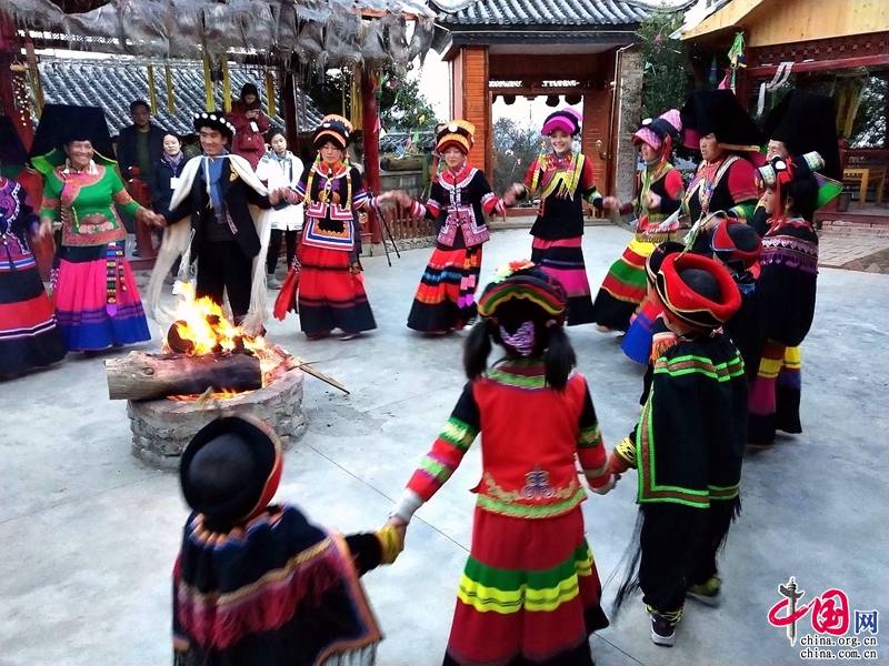 夜幕降临,杨家大佛殿村热情的彝家人围着熊熊燃烧的篝火邀请大家一起打歌,大家边用镜头拍下精彩瞬间,边加入打歌的队伍,共同祈求来年红红火火……