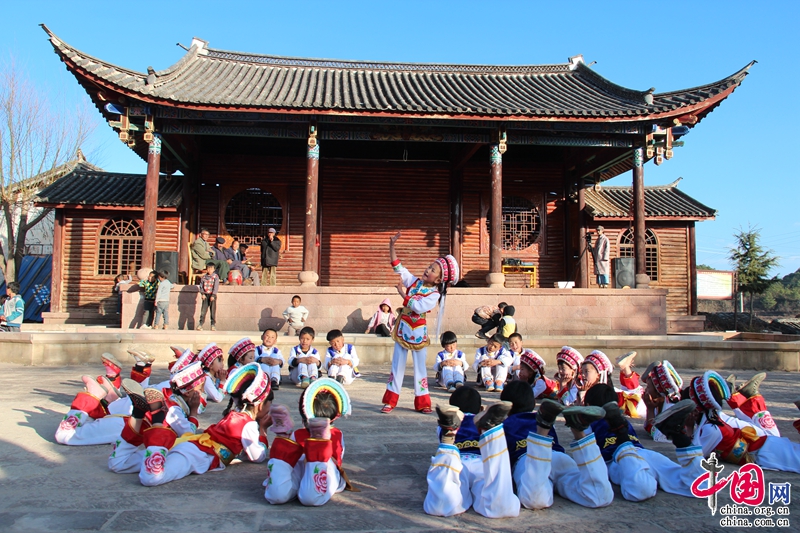 在石龙村,剑川白族歌王歌后携众歌手唱响迎宾曲,给大家送上新年的问候和祝福;传说“会走路就会跳舞,会说话就会唱歌”的石龙小小非遗传承人和文艺队全体出动,霸王鞭、白曲、乡戏轮番上演,现场热闹非凡,歌舞不断,欢笑不断。
