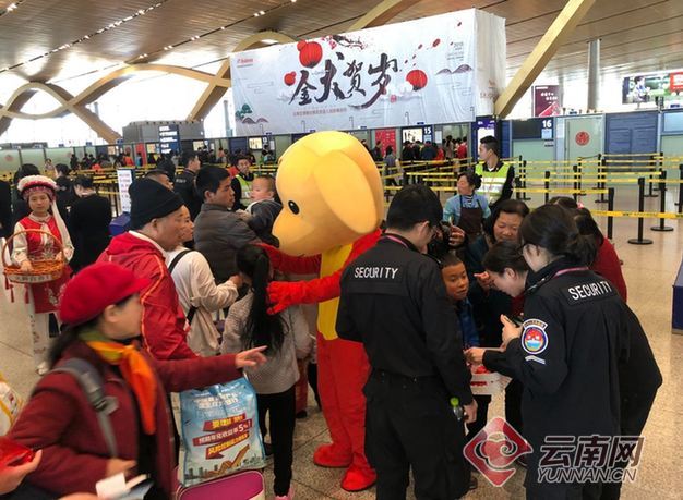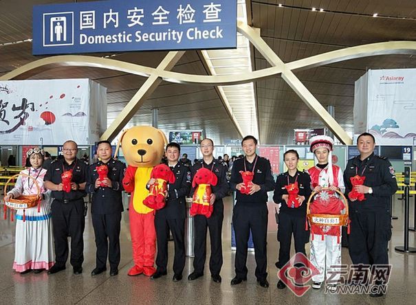 为烘托传统节日喜庆气氛,让出行旅客进出机场感受到浓浓的年味,志愿者们身着“小狗旺旺”及云南少数民族服装,走进旅客中宣称安全文明出行知识,和大家玩猜字谜等游戏,以轻松幽默的方式开展安全宣讲、提供问询服务,倡导安全、守法、文明出行。针对春运期间火种、烟花爆竹等违禁品增多等特点,志愿者们用送窗花、中国结等方式鼓励旅客主动妥善处置和自弃违禁品,让旅客在愉快的气氛中了解乘机规定和配合安全检查。在安检待检区营造出了一种快乐祥和、安全文明出行的喜庆氛围。
