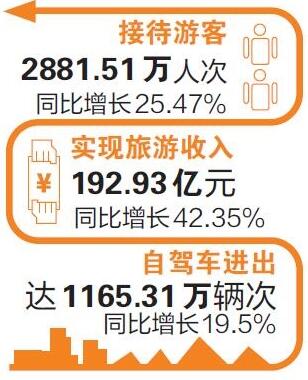 昨日,省旅游发展委员会通报:今年春节黄金周,我省共接待游客2881.51万人次,同比增长25.47%;实现旅游收入192.93亿元,同比增长42.35%。