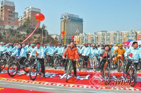 近日,镇雄县举办“古邦春韵·快乐骑行”自行车环城比赛。百余名自行车骑行爱好者聚集在县城雄腾广场,参加主题为“骑行南部新城,共享城市文明”的自行车骑行运动比赛。