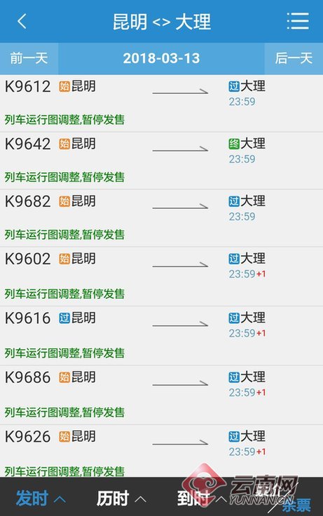 该负责人表示,因为广大铁路全线将于7月开通运行,部分设备需要升级改造,原有的列车运行时间也将进行调整,因此导致相关方向车票短暂停售的情况出现。他透露,大理、丽江方向车票最多3天就能恢复销售,广大有出行需求的旅客请关注铁路12306网站及APP等平台售票信息和中国铁路昆明局集团有限公司相关公告。