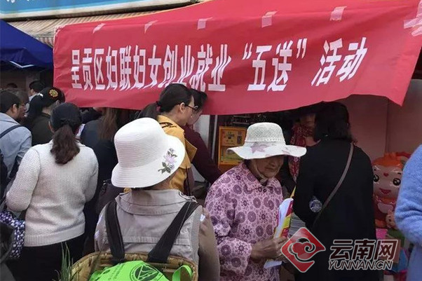 在寻甸县,昆明市妇联联合寻甸县妇联举办2018年“春风送岗位”暨“巾帼脱贫”行动女性专场招聘会。通过这一平台,使广大基层妇女群众更便捷的了解就业信息,积极走出家门务工就业,脱贫致富。