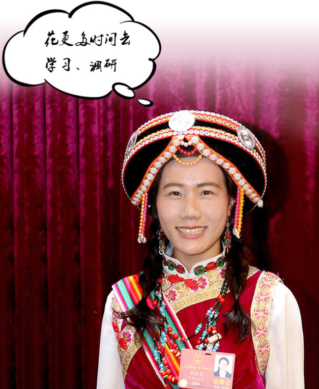 “阿爸阿妈,我在北京学到很多东西,等我回来好好讲给你们听。”身着一身漂亮傈僳族服装的李金莲代表一脸兴奋,对着手机视频边说边笑。电话另一头,传来傈僳山寨乡亲们欢快的笑声。今年是李金莲第一年履职,她重点关注身边事。今后,她将花更多时间去学习、调研,把视角放得更宽一些,提出更有分量的建议。