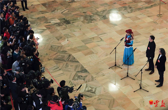 接受采访的委员嘉宾有来自文艺、教育、体育、医疗卫生各界的优秀代表人物,住滇全国政协委员、云南怒江民族文化工作团演员茸芭莘那就在其中。