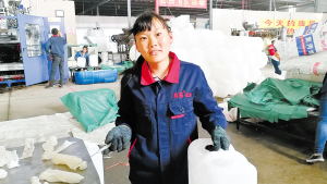 3月7日,记者在昆明真喜塑料制品有限公司的车间见到了这位24岁的姑娘。尽管机器的轰鸣声不小,但她丝毫不受影响,正麻利地用小刀加工塑料桶的边角。不到3分钟,一件新的塑料桶便加工完成。
