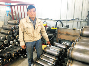 3月7日上午8点,朝阳刚露出头,位于晋宁上蒜工业园区的云南宗安消防科技有限公司厂房内便闪出一阵阵光,50岁的蒋文留戴着面罩开始了一天的工作。这天,他的任务是将不平整的消防瓶修补完好。只见他右手握着电焊,左手拿着填补材料,动作很熟练。5分钟不到,1个瓶子便修补完成了。