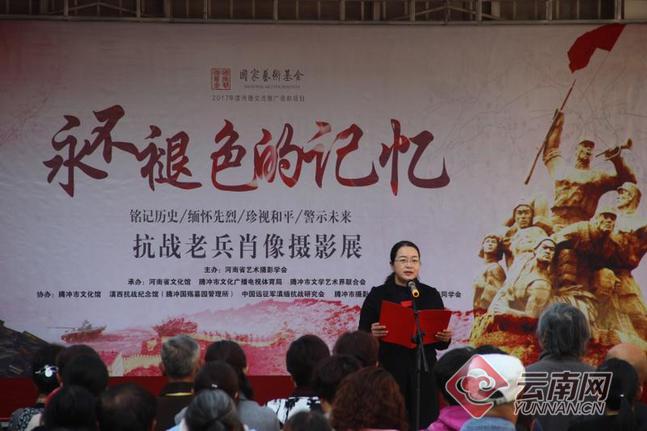 云南网讯(记者 贾云巍 通讯员 张维波)3月15日,由河南省艺术摄影学会主办,河南省文化馆、腾冲市文化广播电视体育局、腾冲市文学艺术界联合会承办的国家艺术基金2017年度传播交流推广资助项目“永不褪色的记忆--抗战老兵肖像摄影展”在腾冲市文化馆文化艺术展示中心开展。
