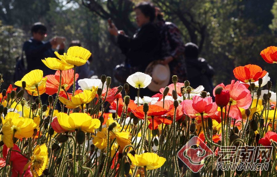 “二月二”里春光美,游人在昆明黑龙潭公园中的虞美人花园踏青赏花。
