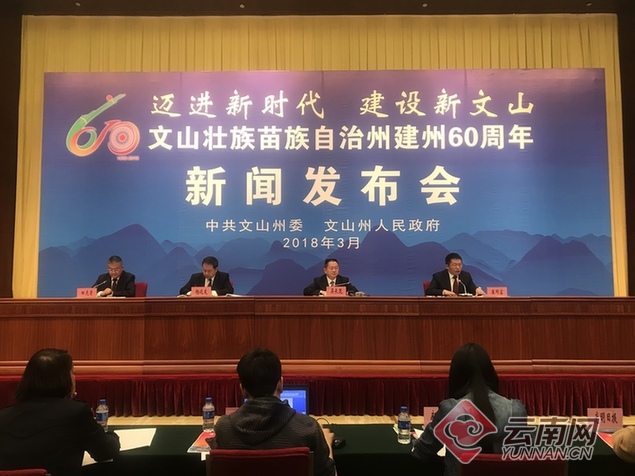 云南网讯 (记者 贺凯)3月24日,以“迈进新时代 建设新文山”为主题的文山壮族苗族自治州建州60周年新闻发布会在昆明举行。