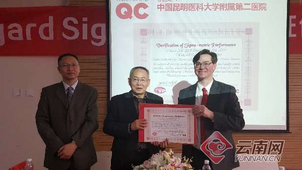 云南网讯 (记者 彭锡)3月26日,昆明医科大学第二附属医院举行了西格玛(Westgard Sigma)国际质量验证计划通过授证仪式,成为云南省第一家获得该质量验证计划的医疗机构。