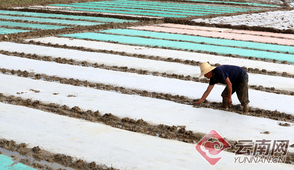 云南网讯(记者 杨峥 摄影报道)在红河哈尼族彝族自治州蒙自市雨过铺镇永宁村,农户忙碌在育秧田进行田间整理、施料肥床,加紧推进优质水稻种植地育秧准备。雨过铺镇是蒙自水稻种植主产区,播种面积近9000亩,其中永宁村今年水稻播种近2000亩,目前水稻育秧工作稳步推进。