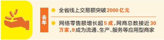 线上零售方面,全省实物型和服务型行业实现协同发展。实物型网络零售额343.40亿元,服务型网络零售额195.14亿元,同比增长分别为53.30%和56.77%。农村网络零售额224.77亿元,同比增长68.94%,在全省网络零售额中占比约4成。