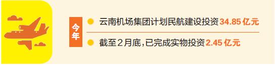 今年以来,全省航空网基础设施建设快速推进。年内云南机场集团计划民航建设投资34.85亿元,截至2月底,已完成实物投资2.45亿元。目前,腾冲机场二期改扩建、兰坪通用机场等重点项目建设正全面提速。