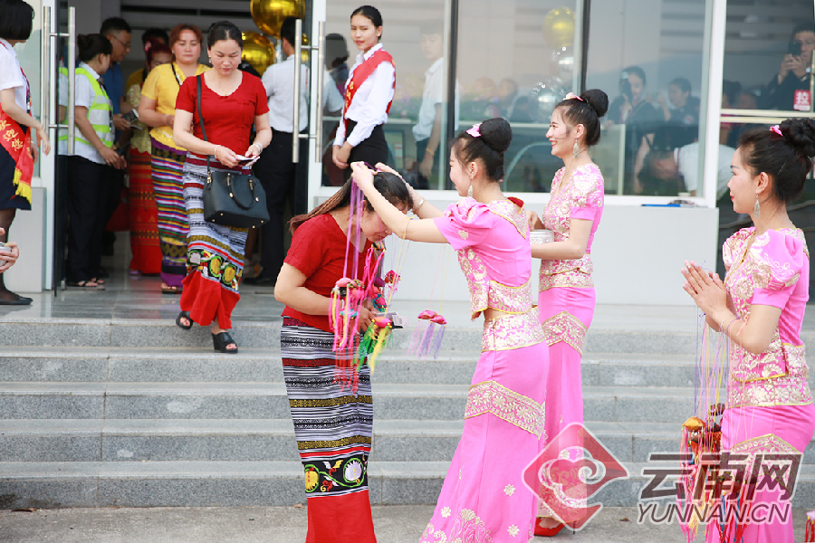 4月4日下午,西双版纳嘎洒国际机场、西双版纳傣族自治州政府联合瑞丽航空在嘎洒国际机场举行“西双版纳=清迈”首航仪式,一架从昆明起飞的波音737型飞机降落机场后,受到了现场来宾的热烈欢迎,现场跳起了极具西双版纳特色的民族舞蹈以此祝福即将首航的航班。