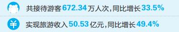 记者昨日从省旅游发展委员会了解到,清明节假期,全省共接待游客672.34万人次,同比增长33.5%;实现旅游收入50.53亿元,同比增长49.4%。