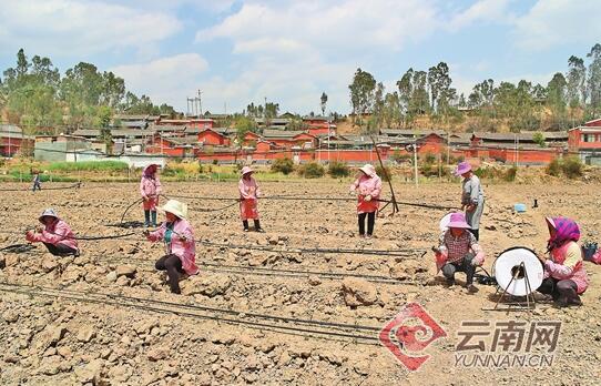 在今年的春耕备耕中,大姚县大力推广滴灌、喷灌等现代节水农业,让水资源得以充分利用,缓解农业生产中水资源不足矛盾,确保农业的可持续发展。图为近日,金碧镇姜沙湾小组群众正在种植的滇红、金边食用玫瑰大田里铺设输水滴灌管。