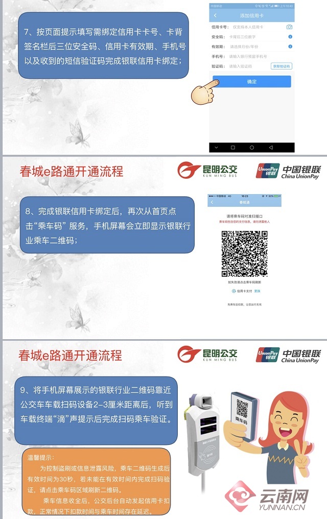 据介绍,昆明市作为100个国家级“移动支付便民示范工程”示范城市之一,为深化金融与交通行业合作成果,在人民银行昆明中心支行的组织下,中国银联云南分公司联合各发卡银行回馈广大市民,送出扫码乘车优惠大礼包,绑定62开头银联信用卡的乘客使用二维码乘车: