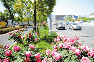 近期,广福路绿化带树桩月季盛放,让该路段成为一条名副其实的“鲜花大道”。 记者赵伟摄