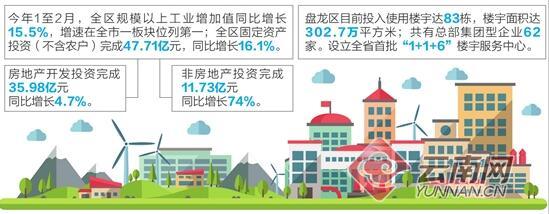 为蹚出一条中心城区创新转型发展新路子,盘龙区一手抓空间优化布局,一手抓新旧动能转换,全力开拓新空间、激发新活力、培育新业态,效果逐年显现。今年1至2月,盘龙区经济良好开局,全区规模以上工业增加值同比增长15.5%,增速在全市一板块位列第一;全区固定资产投资(不含农户)完成47.71亿元,同比增长16.1%。其中,房地产开发投资完成35.98亿元,同比增长4.7%;非房地产投资完成11.73亿元,同比增长74%。