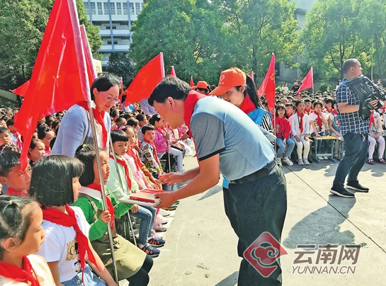 云南网讯(记者 谢毅) 24日,由团省委、省少工委主办,共青团昭通市委、昭通市少工委、中国建筑第二工程局西南分公司承办的“争做新时代好队员——你好,新时代!”暨“情暖童心 助力扶贫”关爱保护农村留守儿童活动,在镇雄县罗坎镇中心小学举行,我省首支关爱留守儿童志愿服务队同时成立。
