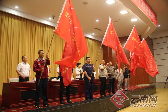 活动现场,领导为获得2017年度五一劳动奖状、奖章、工人先锋号的先进集体和个人代表颁奖,随后向滇中引水工程劳动竞赛参赛单位授予了劳动竞赛旗帜。