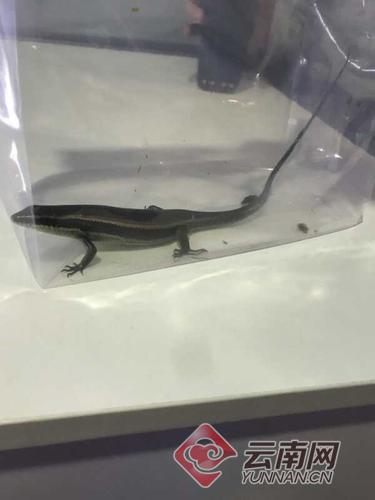 云南网讯(记者 杨之辉)6月5日,昆明海关隶属昆明机场海关在对来自老挝万象的某航班进行登临检查时,在航空器货舱中检出一只活体蜥蜴,这也是昆明机场海关在入境航空器中首次检出活体蜥蜴。
