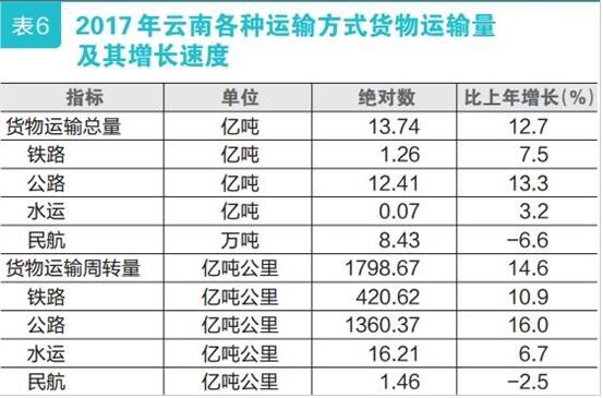全年货物运输总量 13.74亿吨,比上年增长12.7%。货物运输周转量1798.67亿吨公里,增长14.6%。