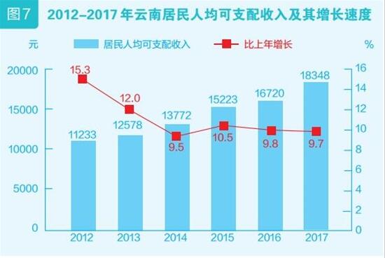 [11]居民人均可支配收入数据由国家统计局云南调查总队提供。居民人均可支配收入指通过住户收支与生活状况调查取得的,调查户在调查期内获得的、可用于最终消费支出和储蓄的总和,即调查户可以用来自由支配的收入,除以家庭常住人口得到的人均收入。可支配收入既包括现金,也包括实物收入。按照收入的来源,可支配收入包含四项,分别为:工资性收入、经营净收入、财产净收入、转移净收入。按常住地分,得到城镇和农村居民可支配收入。