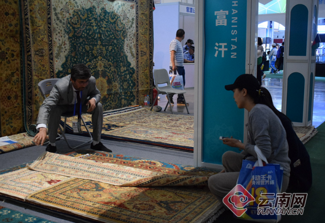 6月17日,南博会进入第3天,在8号展馆里,记者看到阿富汗展位上Mohammad Rasol Kazimi正在通过翻译助理给前来了解的市民翻看并介绍自己的商品。"这个是纯羊毛,纯手工的地毯,特别干净,对小孩也好……"随后,在和记者的聊天中,Mohammad Rasol Kazimi说,自己第一次来中国是7年前,之后的每一年里,自己几乎都会来中国,无论是旅游还是出差,当然,他坦言自己来得最多的还是云南。
