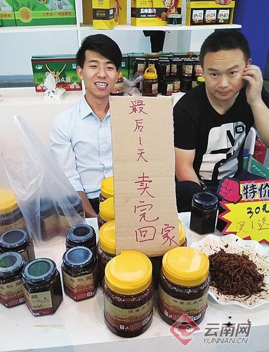 在2号馆的曲靖展台,卖各式咸菜的销售人员说,昨天是面向市民开放后销售最火爆的一天,大量市民前来购买曲靖土特产,就连曲靖产的藠头,都已经卖完了一缸,上午又新进了一缸。