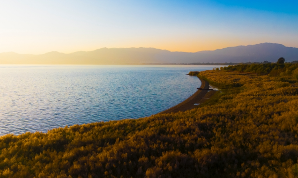 进入冬季以来,云南抚仙湖畔的芦苇花迎来最佳观赏期。傍晚,太阳从天际线慢慢落下,湖水荡漾着金色光芒,成片的芦苇花在晚风中摇曳,晚归的水鸟掠过苇梢,翅膀沾着夕阳的光,留下水痕隐入暮色。