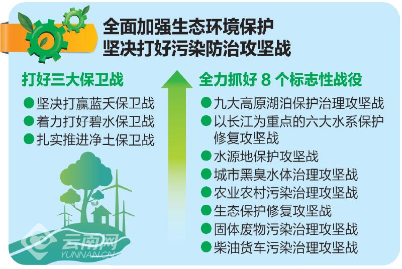 重点行业、重点流域和重点区域是污染防治攻坚战的主战场。实践中,全省各地结合自身实际加强环境综合整治。玉溪市围绕气、水、土壤污染防治三大行动计划,全面推动各项生态环保工作持续深入开展。以全面落实河(湖)长制为重点,建立覆盖全流域的责任体系,坚决打好新时代抚仙湖保卫战。普洱市探索设立扶贫投资发展基金30亿元,用于农村基础设施建设,全市村庄生活垃圾有效治理率78.8%。大理州在扎实推进水、大气、土壤污染防治以及垃圾处置、城乡人居环境综合整治等各项工作的同时,认真总结洱海流域水环境保护治理工作经验,把“生态+”的理念融入全州产业发展,通过实施中水回用、高效节水灌溉、跨区域城乡生活垃圾无害化处置、畜禽粪便资源循环利用等项目,积极构建生态经济体系,推动形成内需扩大和生态环境改善的良性循环。