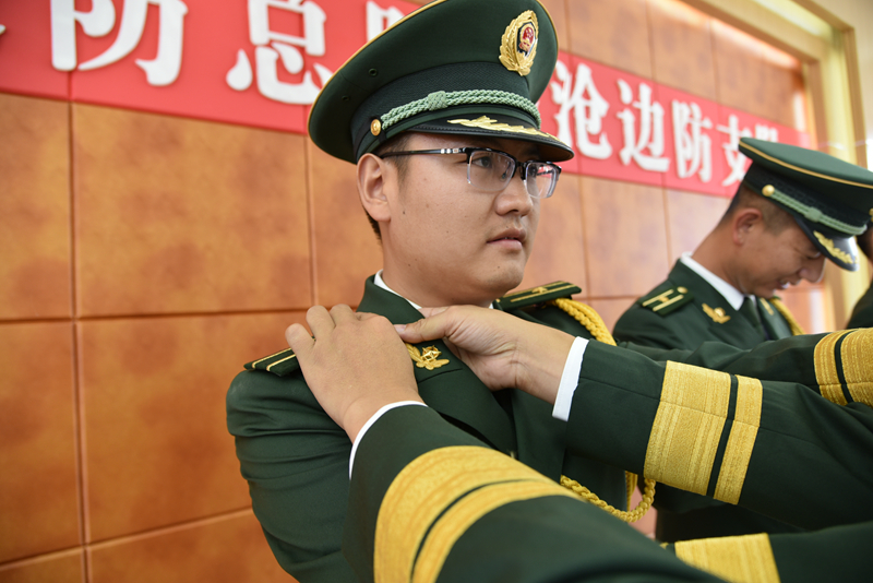 7月31日,在中国人民解放军建军91周年来临之际,云南临沧边防支队举行晋升(授予)武警警衔仪式,用军人特有的礼仪向“八一”致敬。