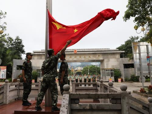 云南勐啊边境检查站举行升旗仪式庆祝建军91周年