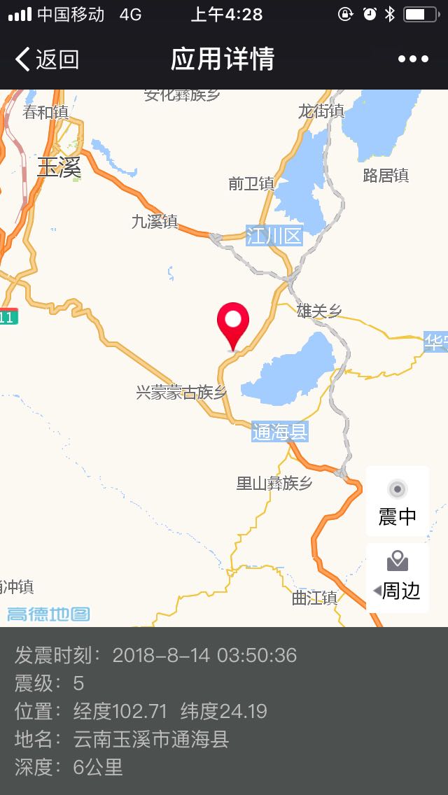 8月14日03:50:36在云南省玉溪市通海县(北纬24.19度,东经102.71度)发生5.0级地震,震源深度6千米;